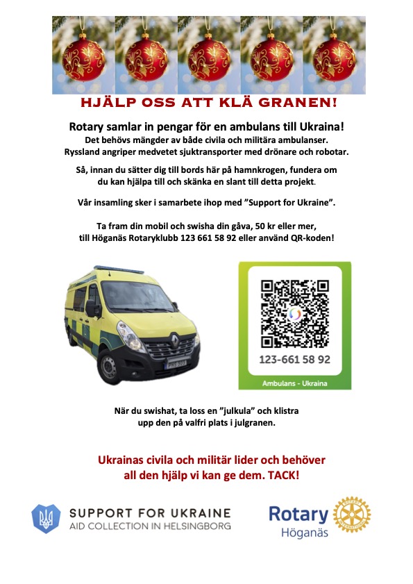 Vår sedvanliga julinsamling "Granen" är nu igång. Syftet är att både vi medlemmar, men också alla andra som besöker Hamnkrogen skall bidra!
