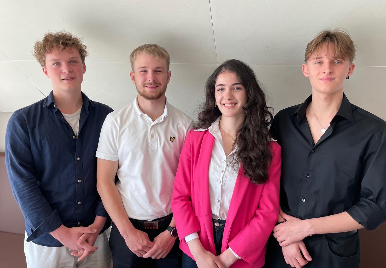 De fyra som hade möjlighet att besöka oss var (från vänster) Anton Engström, Zerin Hassan, Olle Karlsson och Noell Zimmerdahl. Yasemin Cengiz, var på resa och kunde inte vara med. Fotograf: Magnus Hellstrand.